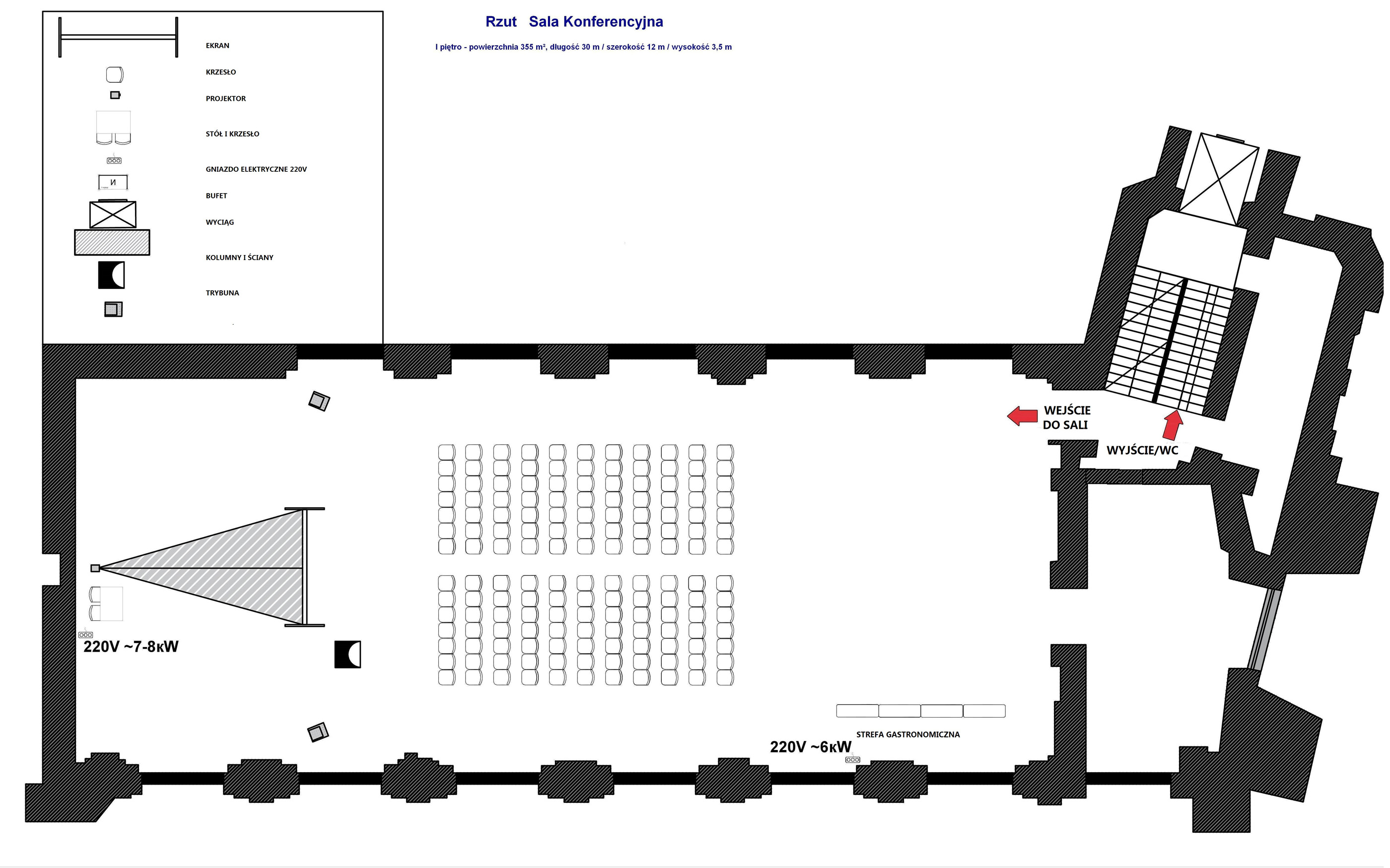 WYMIARY TECHNICZNENa piętrze Reduty znajduje się Szara Sala – przestronna, 350 m2 przestrzeń o wysokości 3,5 m i niepowtarzalnym charakterze. Daje niesamowite możliwości aranżacji. Tuż obok znajduje się Komnata – niewielka, ale pełna klimatu, z oryginalnymi oknami, które są od ponad wieku.